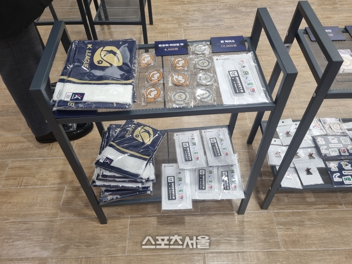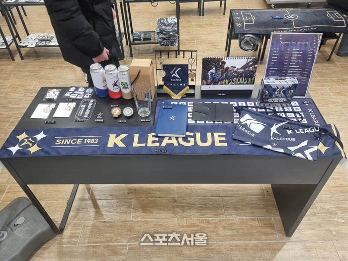 팝업스토어엔 K리그 저지와 스웨트 셔츠, 윈드 브레이커 등 의류 상품과 더불어 엠블럼이 담긴 폰 케이스, 담요, 러그 등이 놓여 있다. 팝업스토어 운영 대행을 맡은 바모스컴퍼니 박영훈 대표는 “축구 마니아는 물론 연인, 가족 단위가 많이 방문했다. 전 구단 엠블럼이 들어간 데스크 매트와 러그, 클립펜은 크리스마스 연휴 기간 조기 완판됐다”고 밝혔다. 러그는 한 팬이 간절하게 구매를 원해 전시된 상품까지 판매했다고 한다.