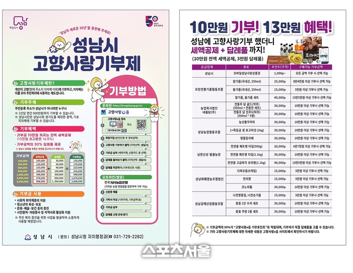 〔스포츠서울│성남=좌승훈기자〕경기 성남시는 고향사랑기부제 시행 1주년을 앞두고 기부금 목표액을 200% 초과 달성했다고 27일 밝혔다.