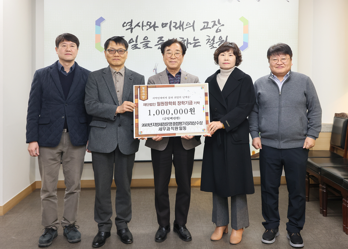또한 철원군청 세무과 직원일동은 강원특별자치도에서 실시한 ‘2023년 지방세정 운영 종합평가’에서 우수한 성적을 거둬 장려상을 수상하며 시상금 100만원 전액을 장학금으로 기부했다.