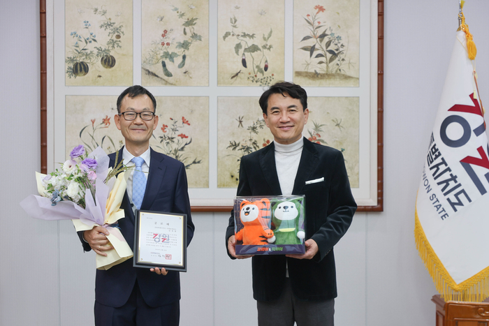 [스포츠서울ㅣ춘천=김기원기자] 김진태 강원특별자치도지사는 12월 28일(목) 도청 통상상담실에서 심재현 강원특별자치도 국제관계대사의 이임에 따른 공로패를 수여했다.