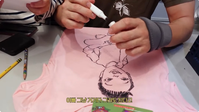 권상우는 그림 속 캐릭터가 입은 티셔츠 위에 다시 꽃 그림을 그렸다. 손태영은 “잘 그리긴 했다. 근데 우리 의도와 전혀 다른 방향으로 해가지고 진짜”라며 한숨을 쉬었다.