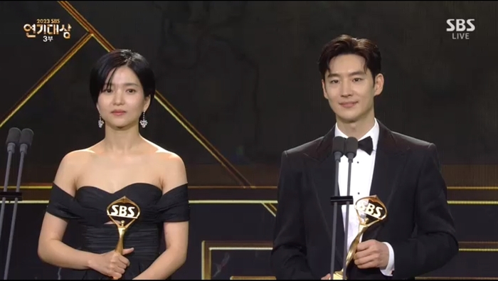 ‘악귀’로 베스트 퍼포먼스상을 받은 진선규는 “2023년 마지막에 많이 아프고 슬픈 일이 있는데 조금은 아름다운 기억으로 오래오래 길게 기억됐으면 좋겠다”고 수상 소감 말미에 이선균을 추모했다.