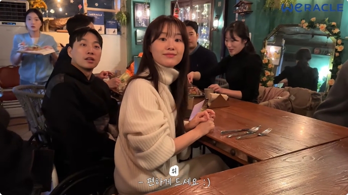 송지은은 ‘위라클패밀리’ 송년회에도 함께 했다. 송지은은 사람들과도 반갑게 웃으며 인사를 나눴다. 박위는 “서로 자기소개 한 번씩 하죠. 서로 모르니까”라며 분위기를 이끌었다.