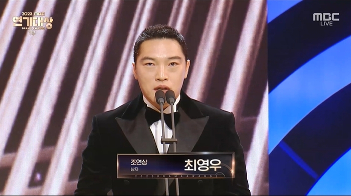 먼저 시청자들에게 감사 인사를 전한 최영우는 “모든 제작진들에게 감사하다. 발톱 6개 빠진 남궁민 형과 은진이에게 감사하다. 할 수 있다면 트로피를 쪼개서 제작진들과 나누고 싶다”며 “제가 데뷔한 지 20년인데 시상식에는 처음으로 이런 뜻깊은 상을 주셔서 감사하다. 부모님께서 부족하게 해서 늘 미안하다고 하셨는데 부모님의 성실한 모습을 보고 자라서 이 상을 받을 수 있었다”고 울음을 참지 못했다.