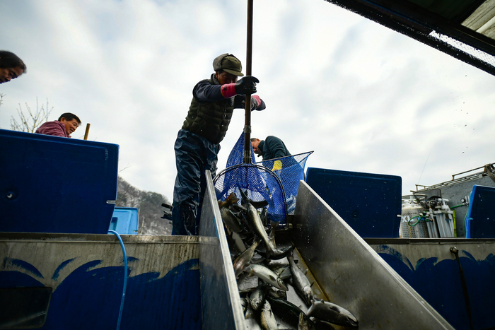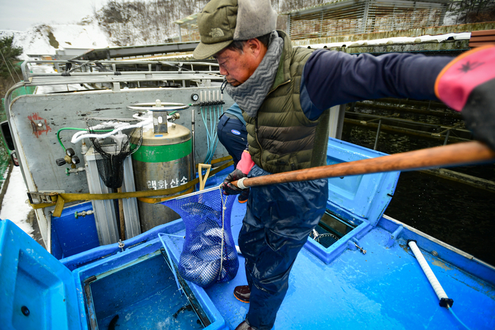 [스포츠서울ㅣ김기원기자] 2024년 갑진년 1월1일 새해 아침, 화천산천어축제에 사용되기 위해 전국의 양식장에서 출발한 산천어들이 화천군 하남면 논미리 축양장으로 속속 도착하고 있다. 이곳에 도착한 산천어들은 수온 적응 등을 거쳐 오는 6일 개막하는 화천산천어축제장에 투입된다.