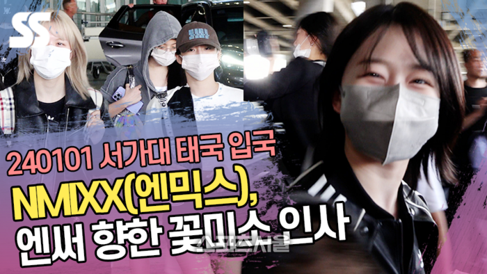 [방콕(태국) | 박경호 기자] 1일 그룹 NMIXX(엔믹스)가 태국 방콕 라자망갈라 국립경기장에서 열리는 ‘제 33회 서울가요대상’에 참석하기 위해 태국 수완나품국제공항으로 입국하고 있다.