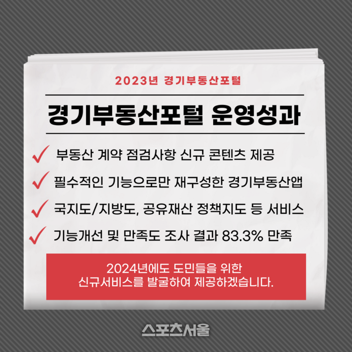 고중국 토지정보과장은 “경기부동산포털은 도민들을 위한 신규 서비스를 지속적으로 확대 제공하고 있으며, 이용자의 요구사항을 반영해 도민이 더욱 쉽게 활용하고 이용할 수 있도록 유용한 서비스를 제공하겠다”고 말했다.