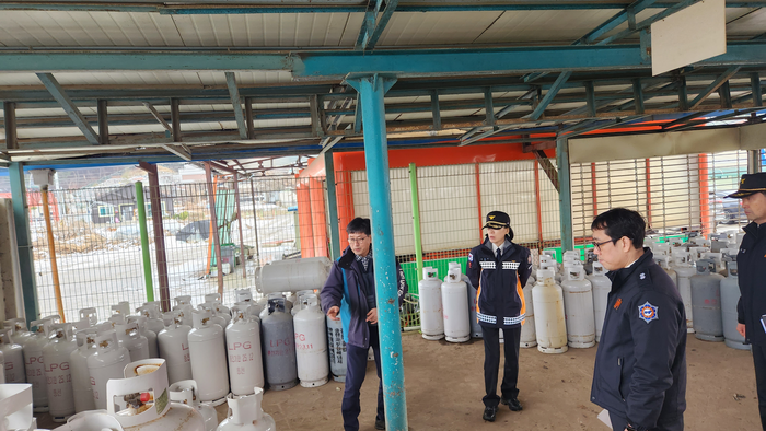 또한, 어제 1. 1.(월) 20:41 평창군 용평면에서 발생한 가스충전소 폭발 및 화재사고와 관련하여 홍천군 북방면에 위치한 LPG 가스충전소를 방문하여 안전관리 실태를 확인했다.