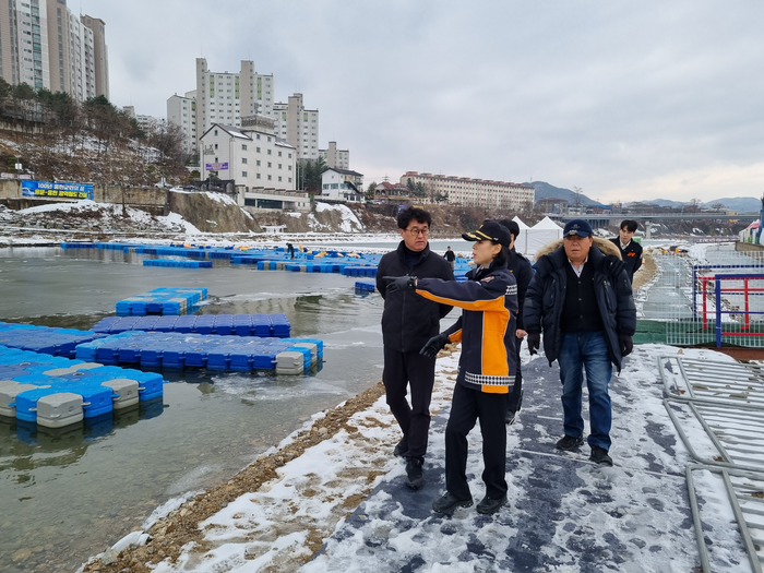 [스포츠서울ㅣ김기원기자] 홍천소방서(서장 김숙자)는 2일 새해를 맞아 서장 취임식을 간략히 마친 후 신임 김숙자 홍천소방서장이 홍천강변 둔치주차장 일원에서 2024. 1. 5.(금) ~ 1.21.(일) 까지 열리는 ‘제12회 홍천강 꽁꽁축제장’ 안전사고 예방을 위한 현지 확인 점검을 했다고 밝혔다.