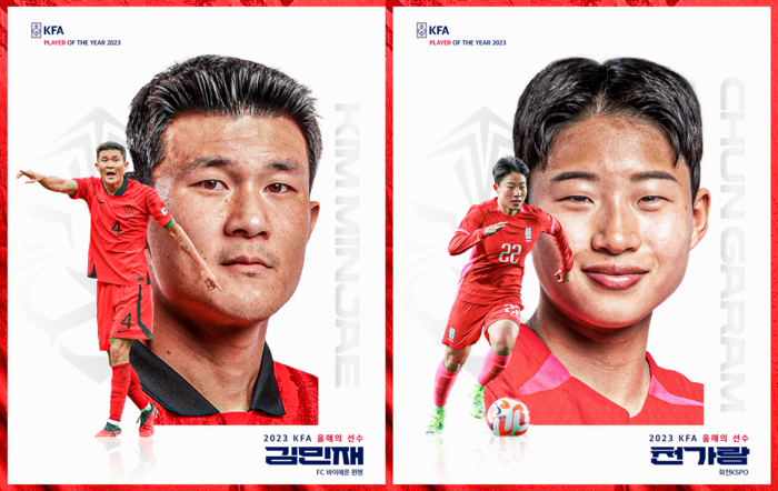 한편 KFA는 2023년 영플레이어와 지도자, 심판 부문 수상자도 확정했다. 남녀 유망주에게 주는 영플레이어상은 아시안게임 금메달 주역 황재원(대구FC)과 여자월드컵 역대 최연소 선수로 등극해 대표팀 미래로 자리 잡은 케이시 유진 페어(무소속)가 받는다.