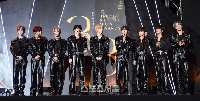 엔싸인(n.SSign)이 2일 태국 방콕 라자망갈라 국립경기장에서 열린 ‘제33회 서울가요대상’ 시상식(주최 스포츠서울, 주관 서울가요대상 조직위원회)에서 Y 글로벌 특별상을 수상한 뒤 소감을 밝히고 있다. 2024. 1. 2. 방콕(태국) | 박진업기자 upandup@sportsseul.com