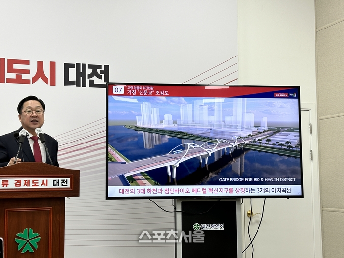 [스포츠서울 | 대전=조준영 기자] 이장우 대전시장이 새해 첫 기자회견에서 ‘대덕특구 동측진입로 개설사업’의 교량 명품화를 통해 ‘도시 이미지를 결정짓는 공공시설물 디자인의 중요성’을 강조했다.