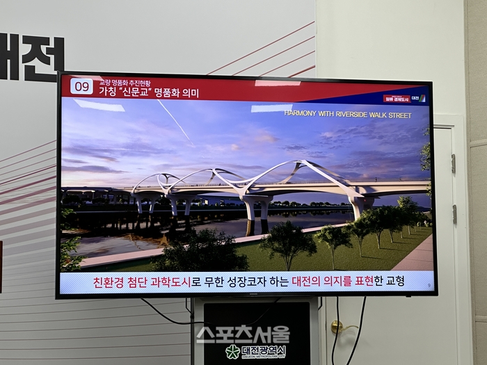 [스포츠서울 | 대전=조준영 기자] 이장우 대전시장은 3일, ‘일류도시 대전의 새로운 도약’을 위한 새해 첫걸음으로, 공공시설물 명품화 마중물 사업인 ‘대덕특구 동측진입로 개설사업’의 교량 명품화 계획을 발표하며, 첫 기자회견에서 가칭 신문교 디자인을 공개하며 ‘도시 이미지를 결정짓는 공공시설물 디자인의 중요성’을 강조했다.