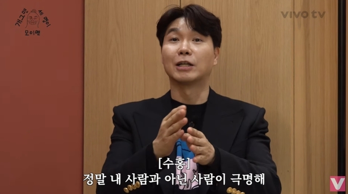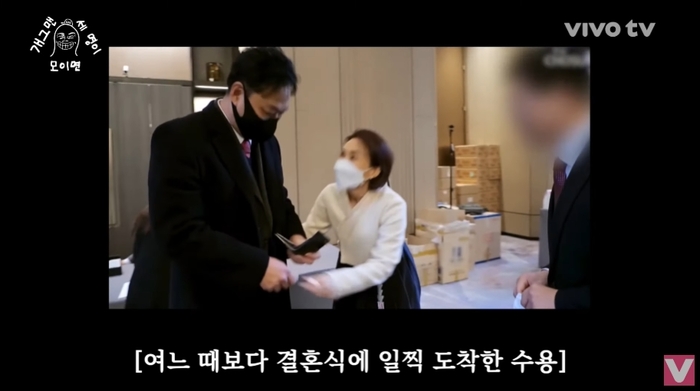 박수홍은 “우리 와이프하고 그 얘기 했다. 진짜 고마운 형이다. (김)국진이 형도 고맙고 (박)경림이도 고맙고. (이)수영이도 고맙고. 혼주석에 있었던 (유)재석이나 (지)석진이 형 다 고맙다. (김수용이) 츤데레인 게 결혼식 때 누구보다도 먼저 와가지고 나를 지켜주는데 내 뒤에 큰 산 하나가 지켜주는 것 같았다. 너무너무 마음속으로 고마워서 정말 내가 이 어려움 지나면 형한테 잘해야지 결심해가지고 지금 잘하고 있다”고 밝혔다.