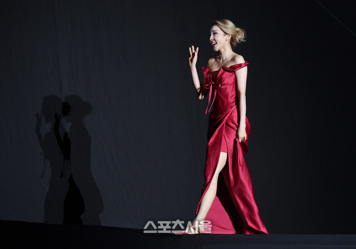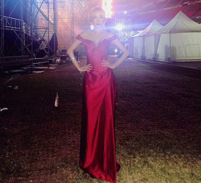 사진 속 산다라 박은 빨간 드레스를 입고 시상식을 준비하는 모습으로 보인다. 특히 우아한 포즈를 취한 전신사진은 가녀린 몸매와 남다르게 작은 얼굴로 완벽한 비율을 자랑하고 있다.