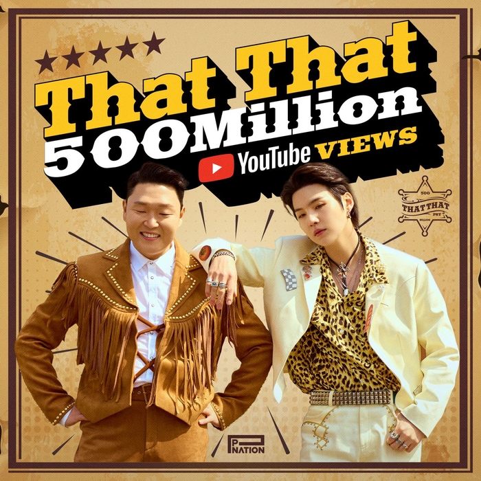 6일 소속사 피네이션에 따르면 싸이의 정규 9집 ‘싸다9’의 타이틀곡 ‘댓댓(That That) (prod. & feat. SUGA of BTS)’ 뮤직비디오 조회 수가 5억 뷰를 돌파했다.