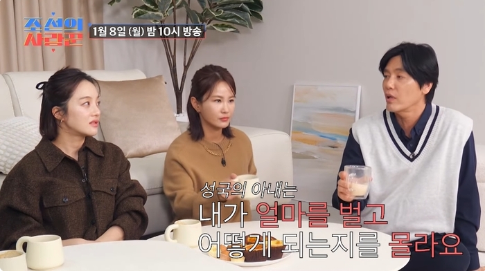 영상을 보던 최성국은 “(아내는) 내가 얼마를 벌고 어떻게 되는지를 모른다”며 “나는 (재정상태) 오픈을 안 하는 것이 맞다고 보는 사람이다”고 자신의 의견을 밝혔다.