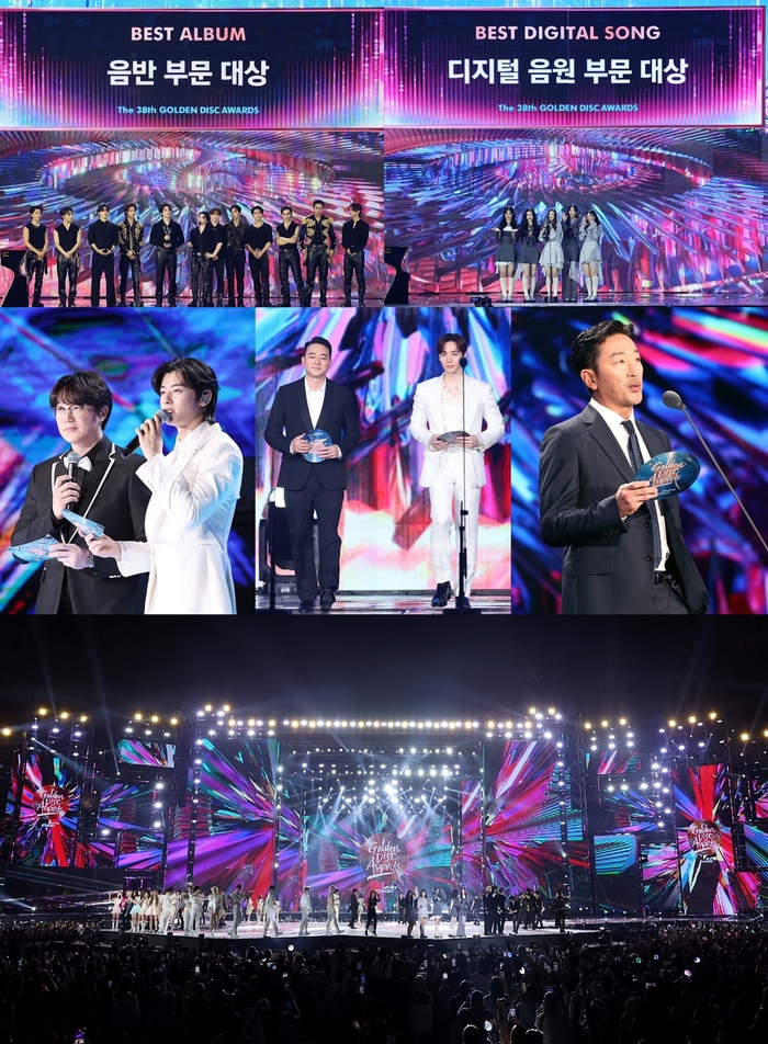 세븐틴과 뉴진스는 6일 JTBC2 ·JTBC4에서 생중계된 ‘38회 골든디스크 어워즈 with 만디리’에서 각각 음반 및 음원 부문 대상을 수상했다.