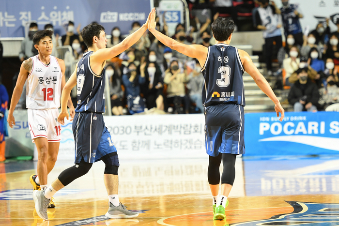 [스포츠서울 | 부산=이웅희기자] KCC의 슈터는 허웅(30·185㎝)이다. 그의 뒤에는 유망주 이근휘(25·187cm)도 있다. 이근휘가 지근거리에서 허웅을 보며 쑥쑥 크고 있다.