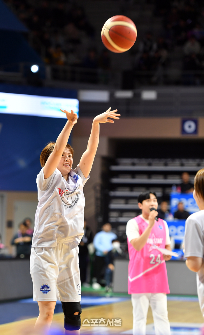 7일 아산이순신체육관에서 열린 우리은행 우리WON 2023~2024 여자프로농구 올스타 페스티벌이 3점슛 콘테스트 예선에서 이소희(BNK)와 가사기 하루나(미츠비시전기)가 1~2위에 올랐다.