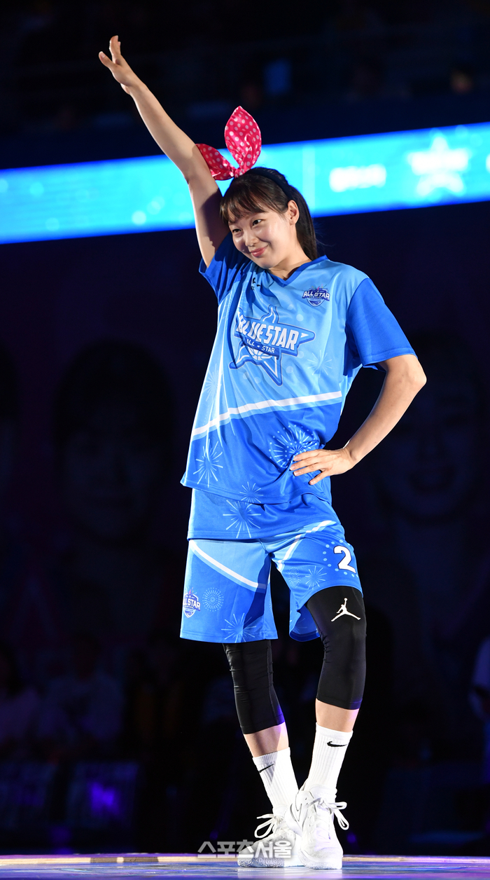신지현이 7일 아산 이순신체육관에서 열린 우리은행 우리WON 2023-2024 WKBL 핑크스타와 블루스타 올스타전에서 입장하며 댄스퍼포먼스를 펼치고 있다. 2024.01.07. 아산 | 강영조기자 kanjo@sportsseoul.com