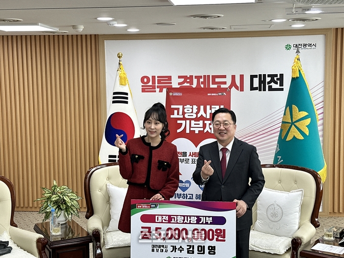 [스포츠서울 | 대전=조준영 기자] 고향사랑기부제 홍보대사인 가수 김의영 씨는 갑진년 새해를 맞아 8일 대전시에 고향사랑기부금 500만 원을 기부했다.