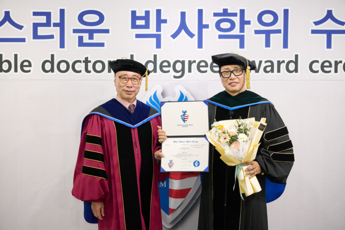 [스포츠서울ㅣ김기원기자] 美 웨스턴캘리포니아 의과대학교는 지난 3일 강남구 소재 압구정 아이프라운지 아이프경영연구소 본관 2층에서 대우패션그룹 안병천회장에게 학교의 위상을 높이고 사회공헌 발전에 앞장서 온 탁월한 경영자로서의 지대한 공로가 인정돼 명예박사 학위를 수여했다고 밝혔다.