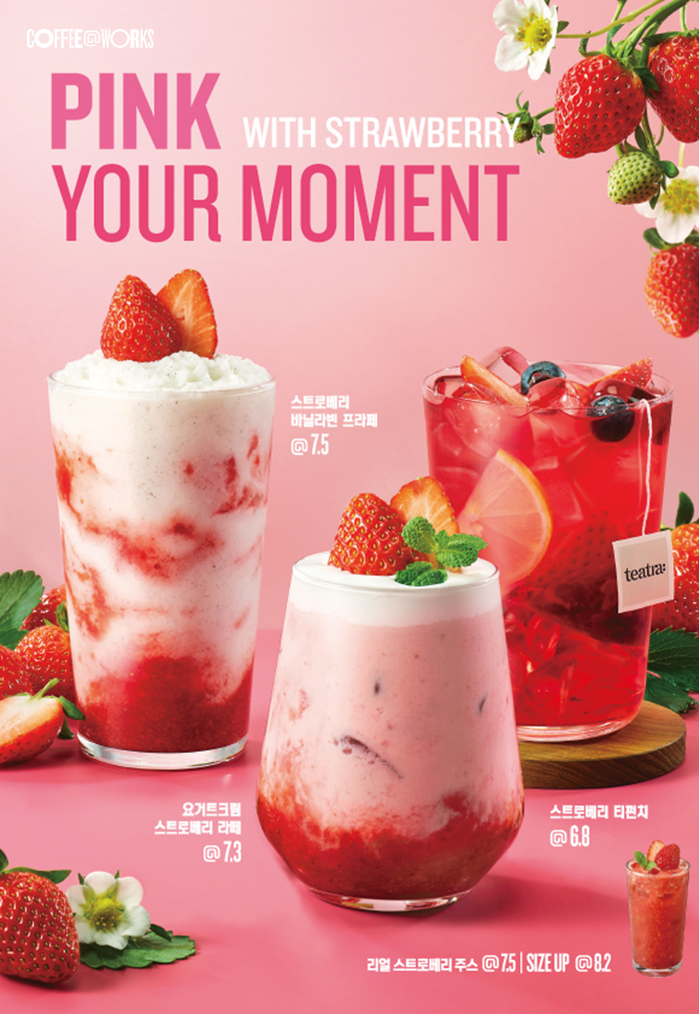 커피앳웍스 담당자는 “겨울 제철 과일인 딸기에 다양한 원료를 더해 다채롭게 즐길 수 있는 딸기 시즌 음료를 출시했다”며 “커피앳웍스의 신제품과 함께 행복한 새해 보내시길 바란다”고 전했다.