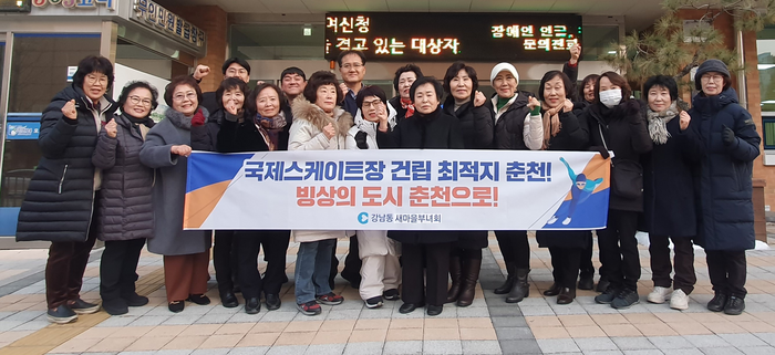 [스포츠서울ㅣ춘천=김기원기자] 춘천시 강남동새마을부녀회(회장 유영근)는 지난 8일 강남동 행정복지센터에서 국제스케이트장 춘천 유치 결의문을 발표하고 릴레이 응원에 동참했다.
