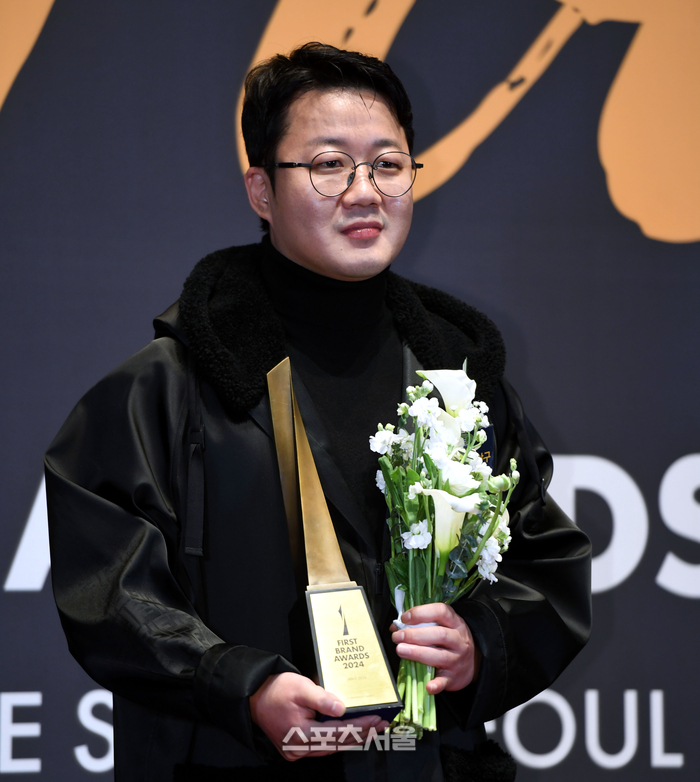 JTBC ‘최강야구’ 장시원PD가 9일 서울 장충동 신라호텔에서 열린 ‘2024 대한민국 퍼스트브랜드 대상’ 시상식에서 스포츠예능 부문 프로그램상을 받은 후 포토월에서 포즈를 취하고 있다. 2024. 1. 9. 최승섭기자 thunder@sportsseoul.com