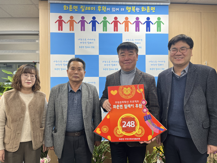 김희철 조합장은 “다양한 지역특화사업의 재원이 되고 있는 릴레이 후원에 조금이나마 힘을 보태고자 다시 한 번 참여하게 되었다”며 “지속되는 한파 속에 모두가 어려운 시기이지만 앞으로도 「화촌면 릴레이 후원」이 지속적으로 전개되어 많은 사람들이 더불어 사는 살기 좋은 화촌면이 되었으면 좋겠다”라고 말했다.