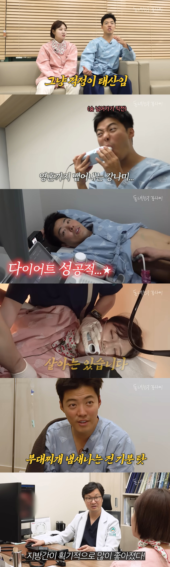 그런가 하면 강남은 자신에 이어 수면 내시경을 하던 하늘이 컥컥대는 소리가 들리자 벌떡 깨어나 “누구 죽었어요?”라고 묻기도 했다.