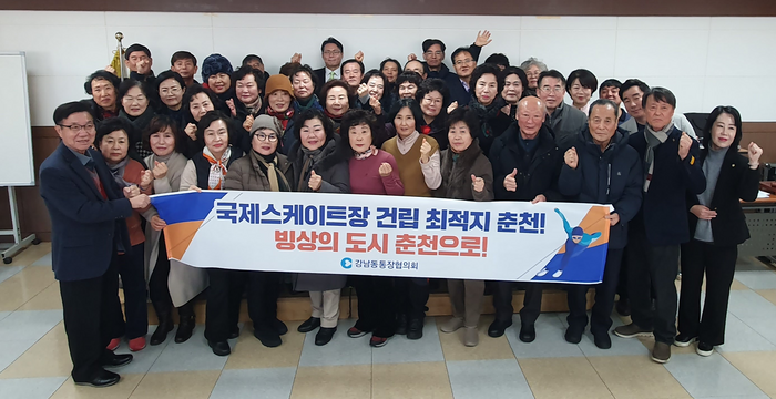 [스포츠서울ㅣ춘천=김기원기자] 춘천시 강남동통장협의회(회장 이인구)는 10일 강남동 행정복지센터에서 국제스케이트장 춘천 유치 결의문을 발표하고 릴레이 응원에 동참했다.