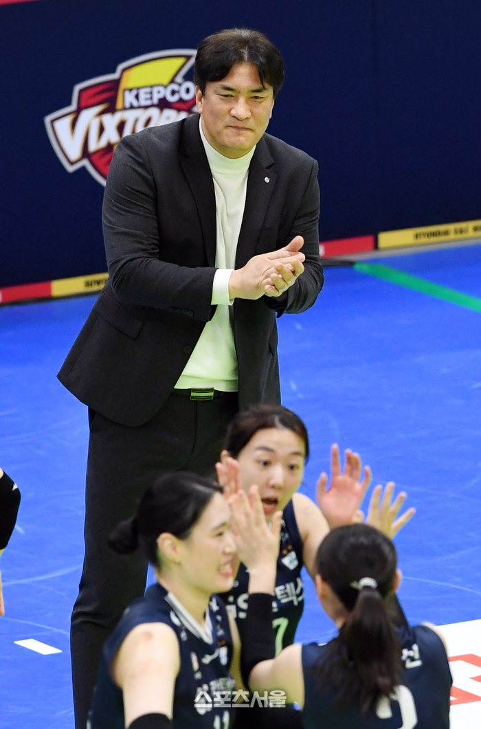GS칼텍스 차상현 감독이 10일 수원체육관에서 열린 2023-2024 V리그 여자부 현대건설과 경기에서 선수들의 득점에 박수를 보내고 있다. 2024. 1. 10. 수원 | 박진업 기자 upandup@sportsseoul.com