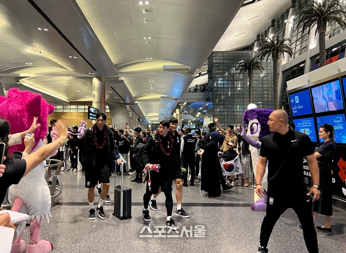위르겐 클린스만 감독이 이끄는 한국 남자축구대표팀은 11일(한국시간) ‘결전의 땅’ 카타르 도하에 입성했다. 약 100여명의 팬들이 소속팀과 대표팀 유니폼, 선물 등을 들고 그들을 맞이했다. 다양한 국적의 팬들이 대표팀을 환대했다.