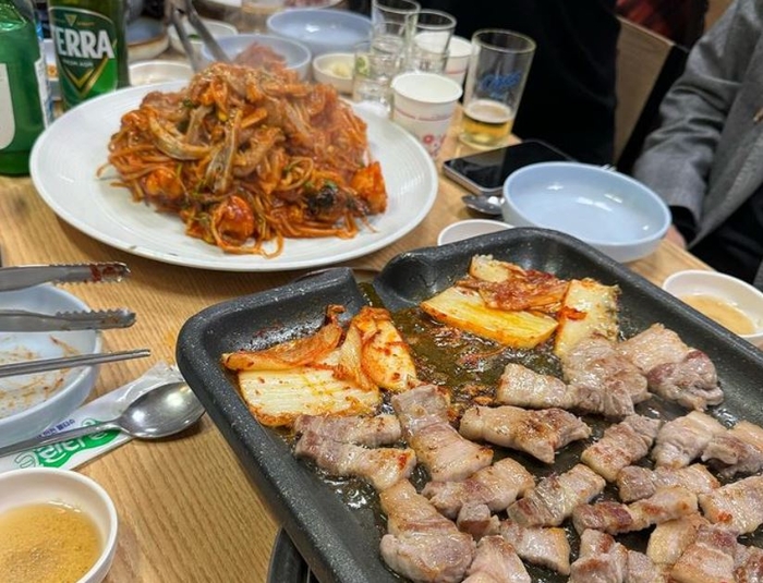 또한 그룹 샤이니 키, 그룹 엑소 수호와 찍은 인증샷도 남겼다. 식당에서 아귀찜과 삼겹살을 먹는 모습에서는 친근한 면모도 엿볼 수 있다.