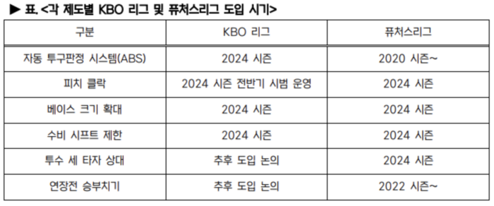 ◇각종 제도 2024 시즌 KBO리그 및 퓨처스리그 적용 시기 확정