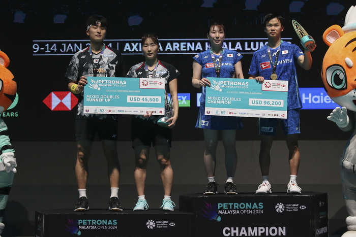 이날 앞서 열린 혼합복식 결승에서는 세계 7위 김원호(25·삼성생명)-정나은(24·화순군청)이 2위 일본의 와타나베 유타(30)-히가시노 아리사(28)한테 37분 만에 0-2(18-21, 15-21)로 져 준우승에 만족해야 했다.