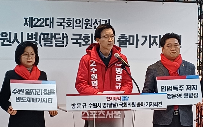 방 예비후보는 그러면서 “민주당이 10년 지배한 수원과 팔달의 현실을 보라”며 “수원이 반도체 산업의 주축 도시로, 한국경제의 운명을 좌우할 기회가 있었음에도 수원은 주저했다”고 주장했다.