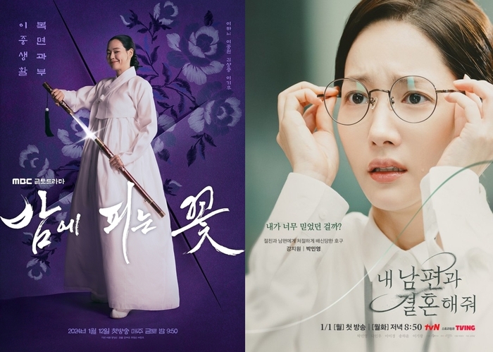 배우 이하늬 주연 MBC ‘밤에 피는 꽃’과 박민영 주연 tvN ‘내 남편과 결혼해줘’(이하 ‘내남결’)가 안방극장에서 큰 인기를 끌고 있다. 시청률조사회사 닐슨코리아에 따르면 이하늬 주연 MBC ‘밤에 피는 꽃’은 2회만에 8.2%의 전국 시청률을 기록하며 전작 ‘연인’의 최고 시청률 12.9%에 도전하고 있다. 박민영 주연 ‘내남결’은 4회 만에 7.9%로, 지난해 ‘일타스캔들’ 이후 내내 이어진 tvN 월화극 잔혹사를 끊어냈다.