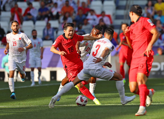 경고 3장을 받은 한국은 바레인의 밀집 수비에 다소 고전했다. 공격에서도 이렇다 할 기회를 만들어내지 못했다. 바레인 특유의 거친 플레이와 압박에 오히려 밀리는 형국이었다