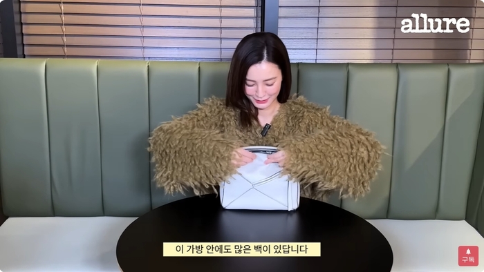 정유미는 작은 핸드백을 소개하며 “저는 원래 이런 가방을 책가방에 항상 넣어 다닌다. 언제 어떻게 약속이 갑자기 생길지 모르기 때문”이라고 설명했다.