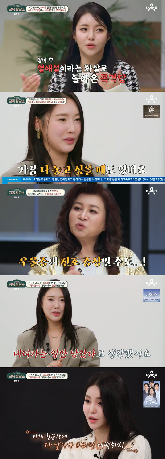 16일 방송된 채널A ‘오은영의 금쪽 상담소’에서 데뷔 5년 만에 ‘롤린’으로 걸그룹 최초 음원 월간차트 3개월 연속 1위에 오른 역주행 신화의 주인공 브브걸 유정과 민영이 출연했다.