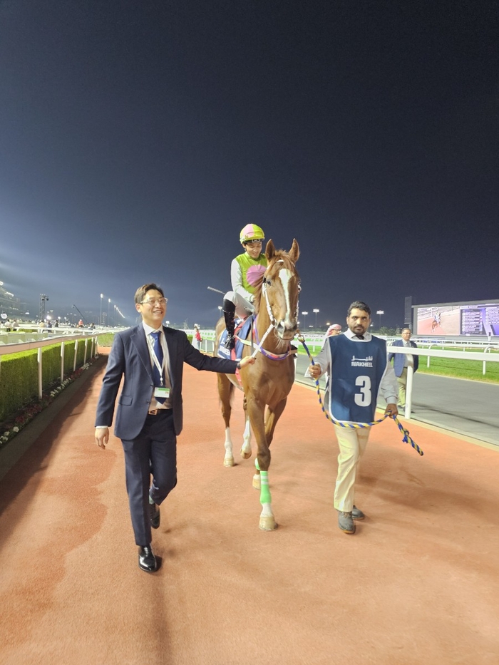 지난 12일 두바이 메이단 경마장에서 열린 두바이 월드컵 예선전에 출전한 한국의 경주마 ‘심장의고동’과 문세영 기수가 8위의 아쉬운 성적으로 두바이 경마 데뷔전을 마무리했다.