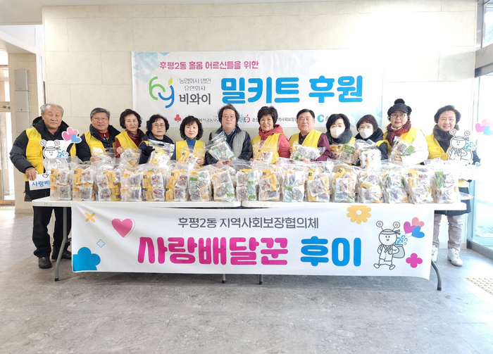 [스포츠서울ㅣ춘천=김기원기자] 농업회사법인 유한회사 비와이(대표 추풍년·사장 임현태)는 17일 춘천시 후평2동지역사회보장협의체(위원장 박정임)를 통해 후평2동 관내 지역아동센터 2개소와 경로당 8개소에 밀키트 총 100개를 후원했다.
