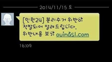 분리수거 위반문자 스미싱. 출처 | 온라인 커뮤니티