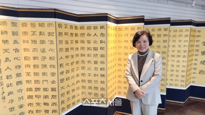 그런 그가 ‘K-서예 바람’을 주도하게 된 건 4년 전 지역 행정복지센터 서예반을 통해 과거 못다한 글재능을 펼쳐보이면서다. 송천 홍재환 씨에게 기초를 배운 이 전 회장은 주요 서예전에서 입상했는데, 내친 김에 ‘아름다운 한글’을 세계에 알리고 싶다는 열망을 품게 됐다.