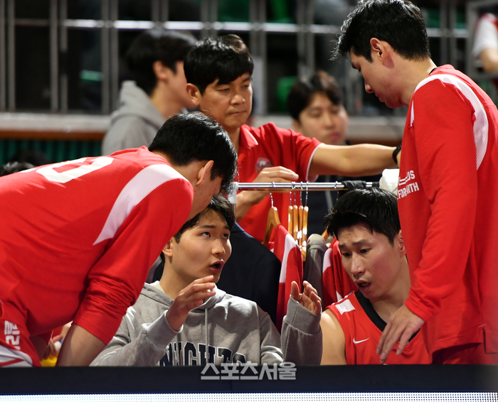 SK 안영준이 18일 잠실학생체육관에서 열린 2023-2024 프로농구 서울SK와 울산현대모비스의 경기에서 무릎 부상을 당해 벤치를 지키고 있다. 2024.01.18. 잠실학생 | 강영조 기자 kanjo@sportsseoul.com