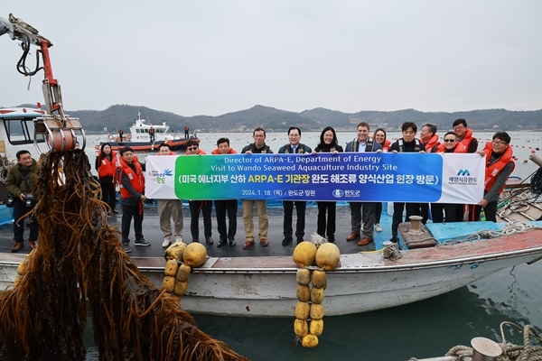 「외해 해조류 양식 기술 시스템 구축」 사업(‘25~’29년)에 해조류(대형 갈조류)를 활용한 바이오매스 대량 생산 및 블루카본 발굴을 위해 최첨단 공법의 양식 기술이 투입됨에 따라 미 에너지 고등 계획원(ARPA-E)에서는 사업 대상지인 국내 최대 해조류 생산지 완도군을 찾게 됐다.