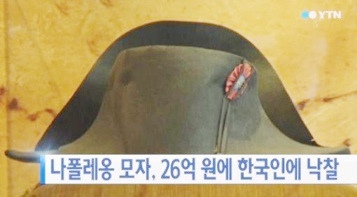 오세나 경매소는 이날 나폴레옹의 검은색 펠트 모자가 한국인 수집가에게 190만 유로(약 26억원)에 낙찰됐다고 밝혔다.